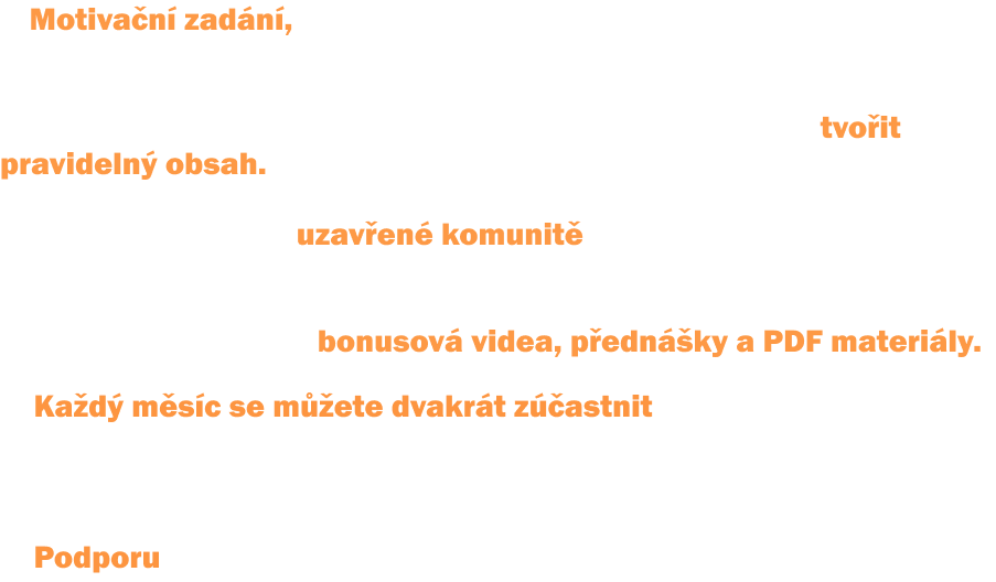 2x za měsíc se konají skupinové konzultace, tréninky a webináře (s možností záznamu).
